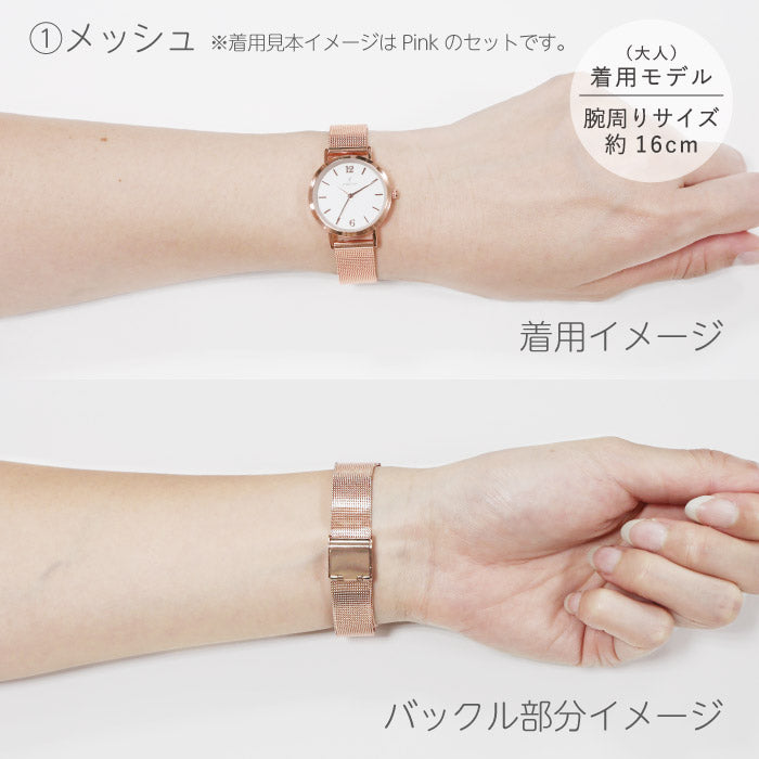 - 腕周りサイズ:1、メッシュベルト:約135~約205mm/2、合皮ベルト:約130~約180mm